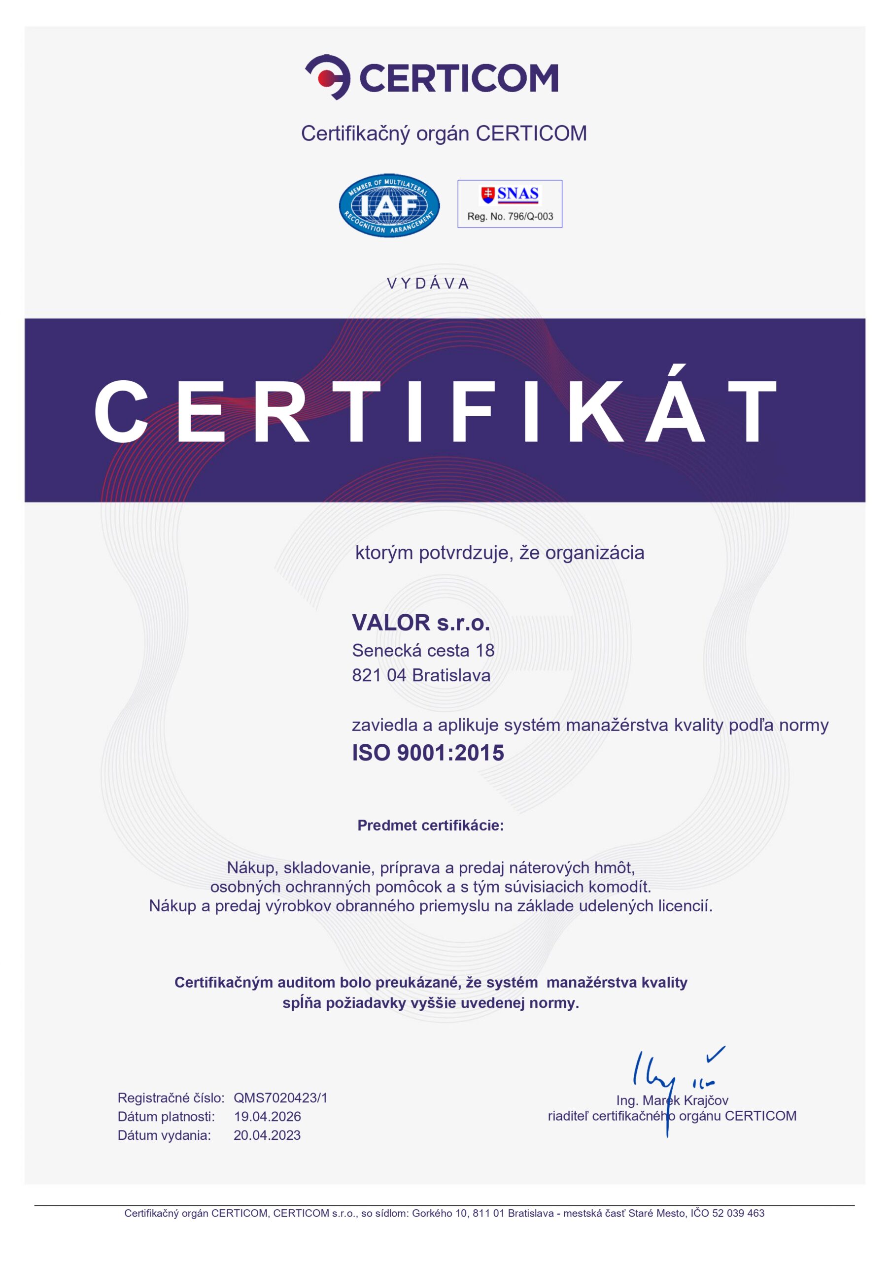 Spoločnosť Valor s.r.o. je na trhu od roku 1993. Orientuje sa na dodávky ochranných náterov do najagresívnejších prostredí a predaj ochranných pomôcok.